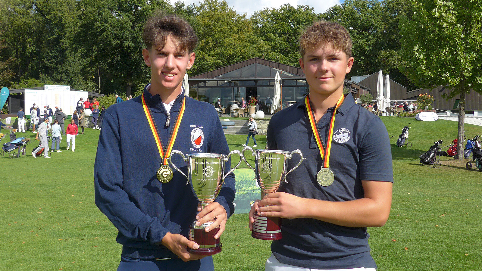 Bild 2: DM AK 14/16 Jungen: Konrad Feth (Lübeck-Travemünder GK, l.) und Henry Liebwein (GC München Eichenried) sind die neuen Deutschen Meister der AK 14 und 16. (Foto: DGV/Kretzschmar)